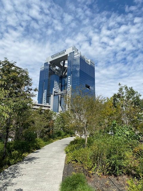 昨年末、龍本のコラムで紹介していた「グラングリーン大阪」の水場の横を抜けて、北西へ進むと梅田スカイビルが見えてきます。