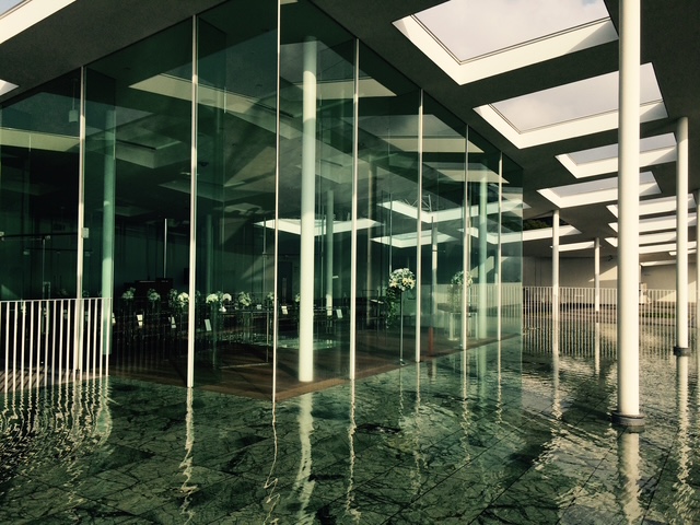ロビーで「少し見学させてください」と挨拶して話をしていると、「上の階に水盤のある式場があるので見学されますか?」と言われて案内していただきました。